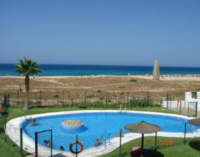 Apartamento en la urbanización Jardines de Zahara que consta de 2 dormitorios, un baño, cocina, salón comedor, terraza con vista al mar y plaza de garaje. Es una tercera planta con ascensor. Capacidad para 4 personas. Zonas verdes, pistas de padel y piscina en la urbanización, acceso directo a playa